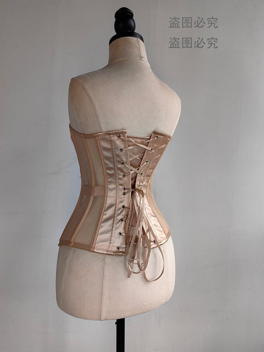 Women Corset Bustiers Strapless With Bra Breathable Mesh Lace Up Boned Bodices Waist Girdle Tummy Control Tight Tops XXS To 6XL