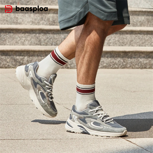 Baasploa Men's Running Shoes Leather Mesh Breathable Non-Slip Men's Outdoor Sports Lightweight Running Basketball Shoes