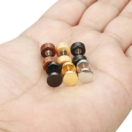 1Pair/2Pcs Wood Stud Earring For Men/Women 6-12mm Stainless Steel Barbell Earring Classic Pop Gothic Jewelry Best Gifts