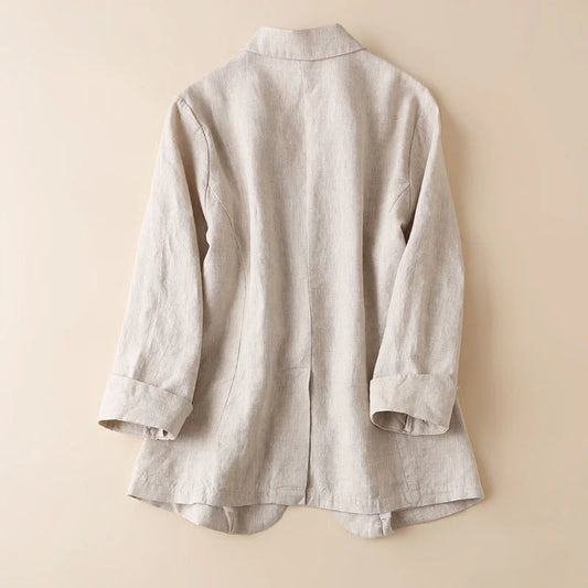 Cotton and Linen Small Suit Women Blazer 2022 Summer New Korean Fashion Thin Coat Three-quarter Sleeve Casual Blazers Jacket
