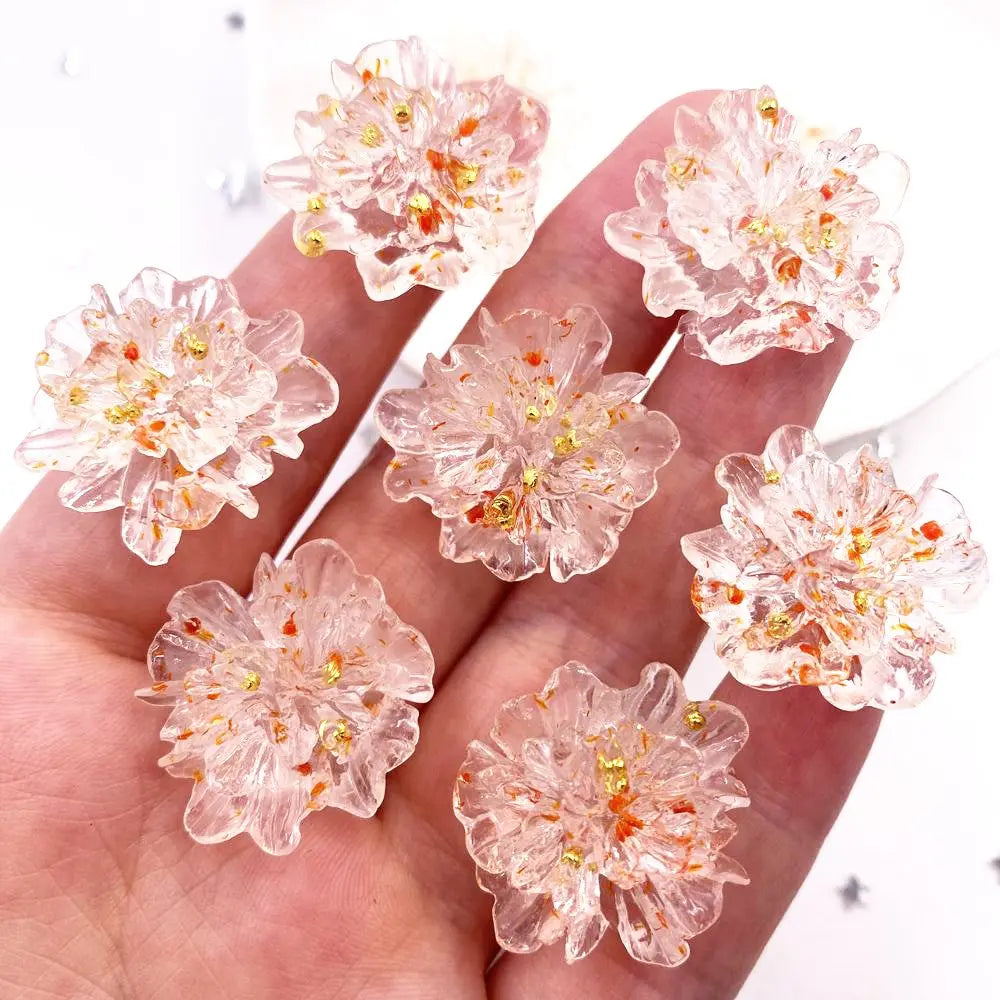 10pcs Resin Colorful Gold Foil Crystal Flower Flatback Flower Rhinestone DIY Wedding Gems Scrapbook Ornaments Applique Crafts