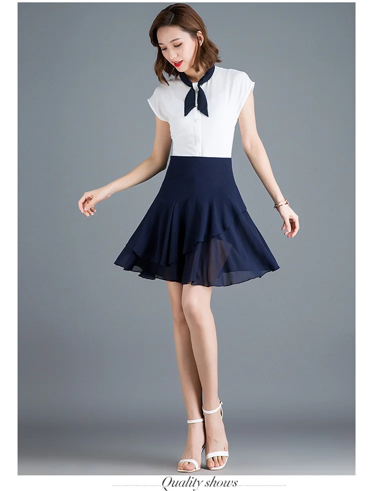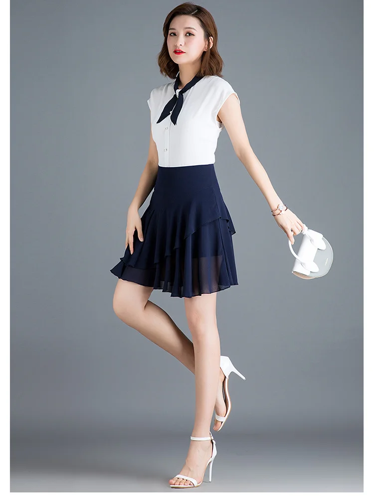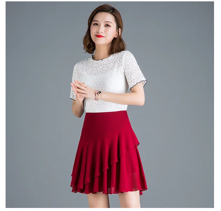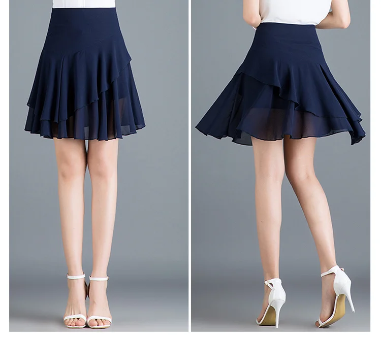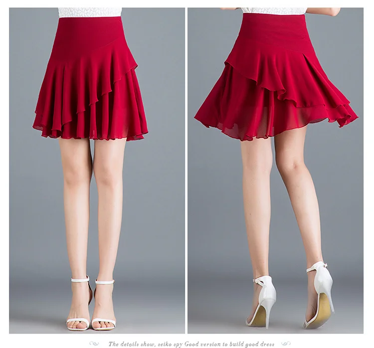 #1704 Summer Chiffon Skirts Womens Sexy Pleated Skirt Elastic Waist Casual Short A-line Skirts Female Black Red Blue