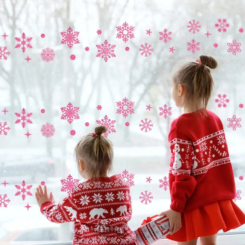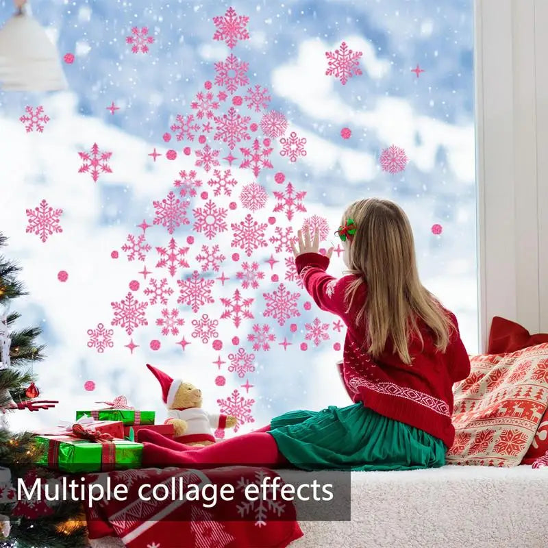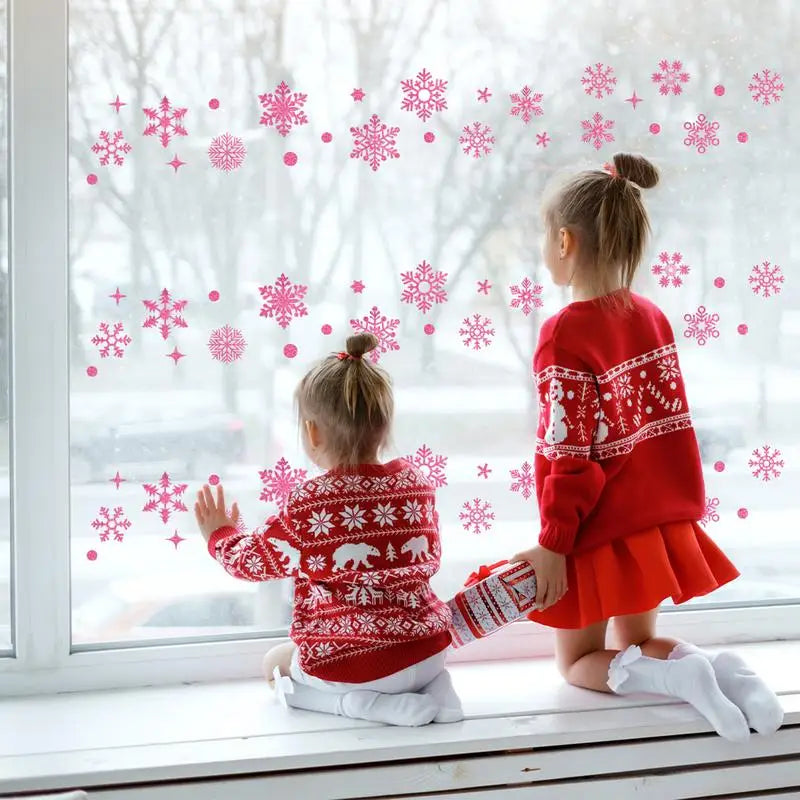 1.Easy Festive Transformation: Adorn your window with pink snowflakes to enhance festive atmosphere, seamlessly blending Christmas decor for a warm and joyful ambiance