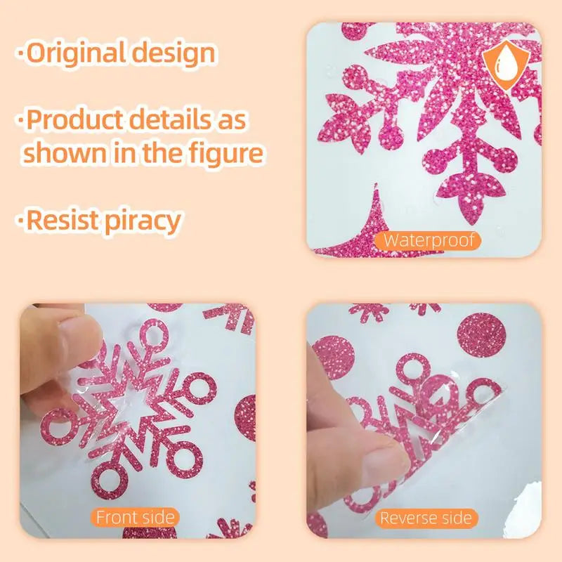 3.Effortless Application: By using electrostatic adsorption, these snowflake window clings require no glue, making it effortless to decorate your window and walls while also providing protection