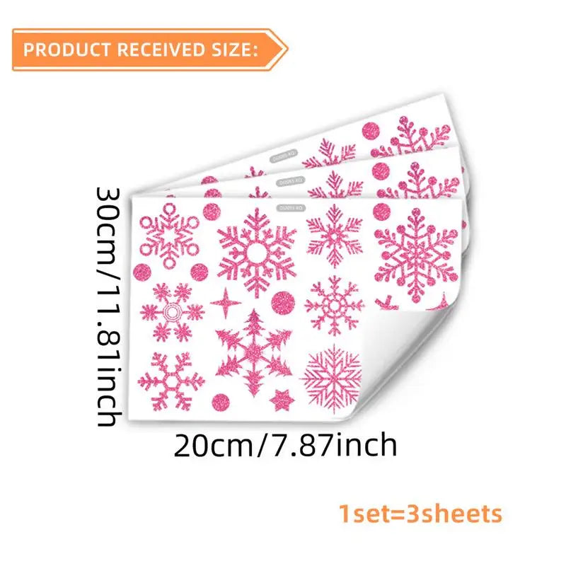 Snowflake Window Clings 3X Window Clings Christmas Pink Snowflake Reusable Decorative Window Stickers Double Side Pattern for