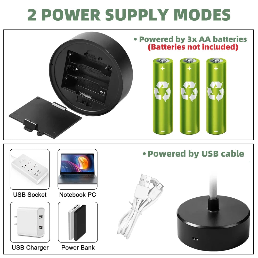 Driving mode: USB plug 4.5v or 3 dry batteries 5 (shipment does not include batteries)