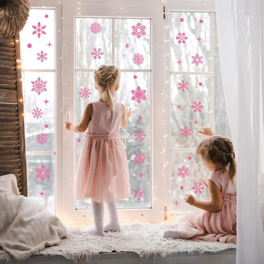Snowflake Window Clings 3X Window Clings Christmas Pink Snowflake Reusable Decorative Window Stickers Double Side Pattern for