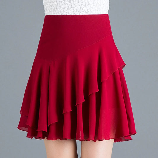 #1704 Summer Chiffon Skirts Womens Sexy Pleated Skirt Elastic Waist Casual Short A-line Skirts Female Black Red Blue